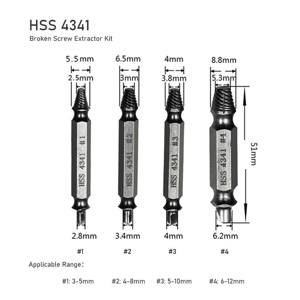 Buy Double Ended Screw Extractor Set 2-in-1 Drilling & Extractor HSS 4341 4PCS Screws Remover Kit Bolt Stud Tools in Nigeria