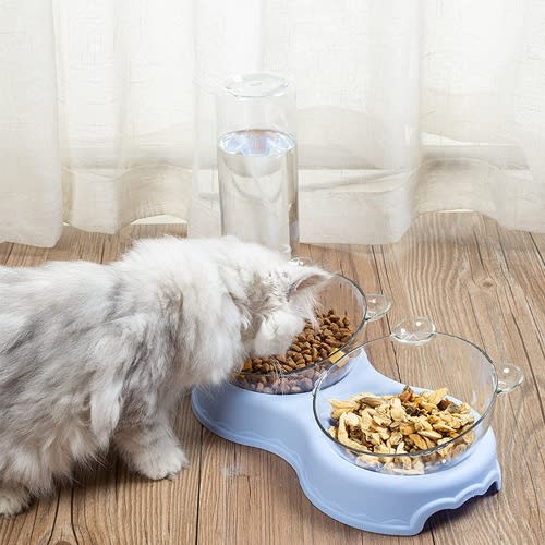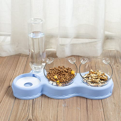 Buy Double Food Bowls Auto Water Feeder Dispenser For Cat & Dog - Blue in Nigeria