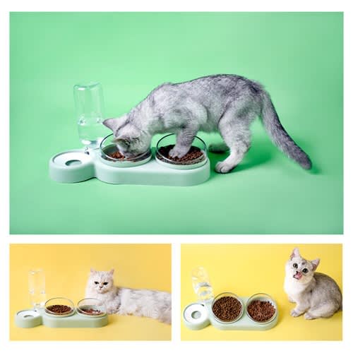 Buy Double Food Bowls Auto Water Feeder Dispenser For Cat & Dog - Green in Nigeria
