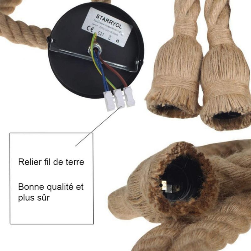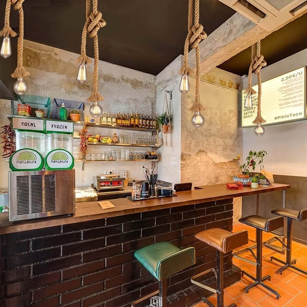 The length of each rope is 75cm, you can simply turn it into a unique shape as ,you can tie or hang anywhere you want.Hemp rope hanging lamp industrial can be used for lighting, but also as a decoration for home, cafe, bar, etc.Voltage: 220-240V - Power: max 60W -