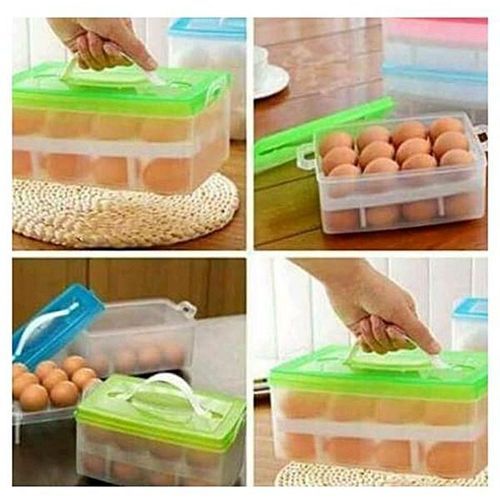 Plastic egg storage box holds up to 32 eggs