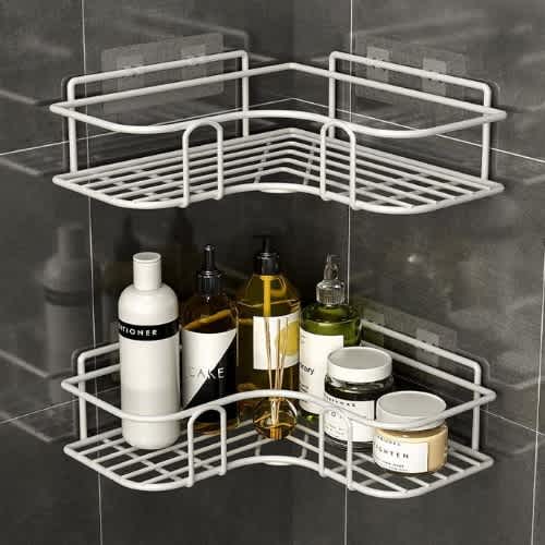 Buy Double Layer Bathroom Corner Shelf - White in Nigeria