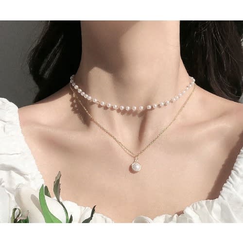 Double layer pearl choker with Chain necklace it is shiny under the light, because it features round imitation pearls and electroplating technique, which make it more simple and stylish.