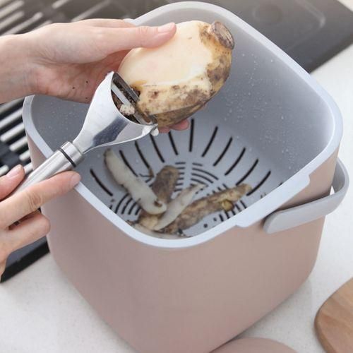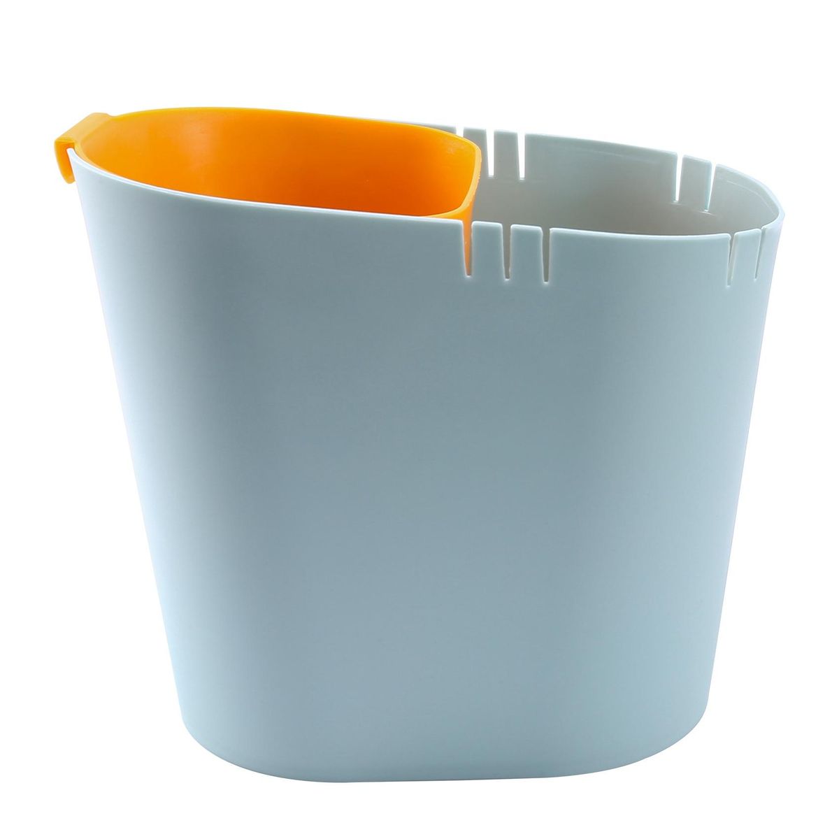 The environmentally friendly trash cans work well with reusable grocery bags.