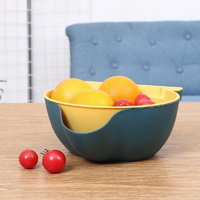 Double-layer Sea Plasti Fruit Basket Vegetable Washing Basket Drainage-dark Blue