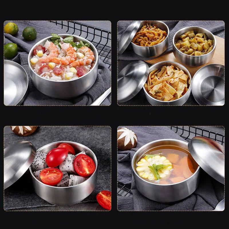 The double-layer design of the stainless steel bowl has good heat insulation and anti-scalding performance, which is very suitable for Korean cuisine, kimchi, soup, noodles, rice, etc.