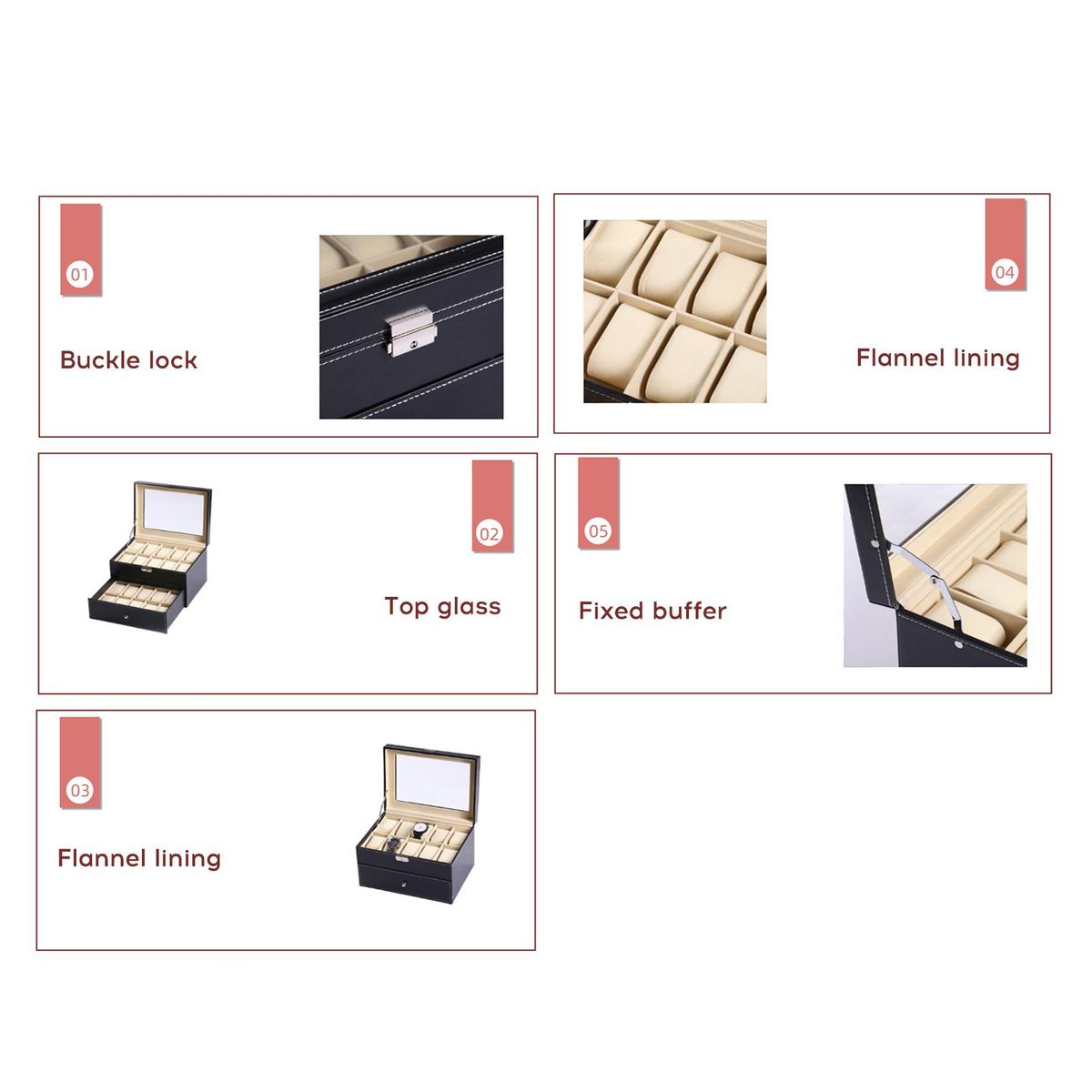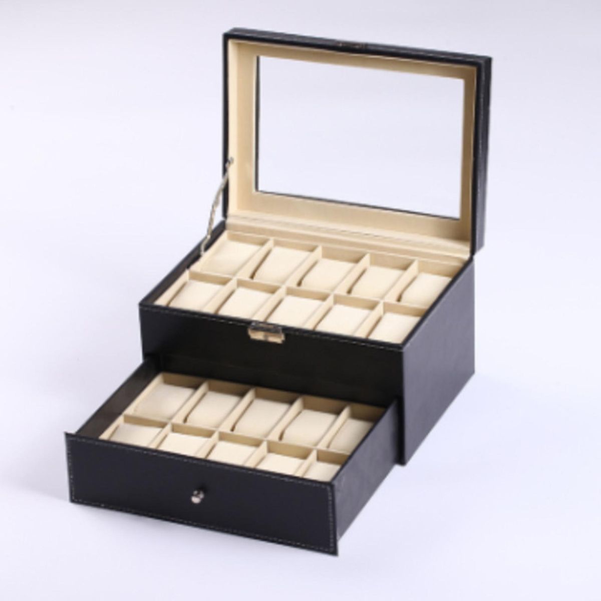 Buy Double-layer Watch Storage Box Flannel Lining Fixed Buffer Buckle Lock Top Glass in Nigeria