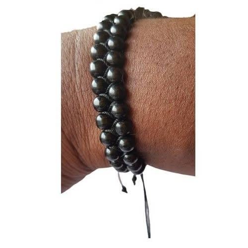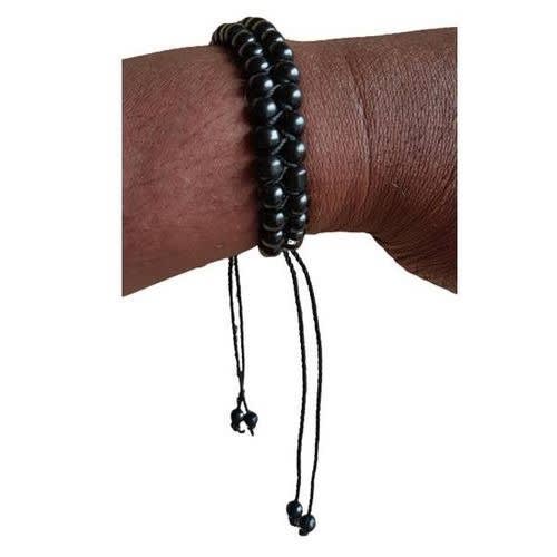 Buy Double Layers Black Braided Bead Bracelet With Adjustable Wristband For Men in Nigeria