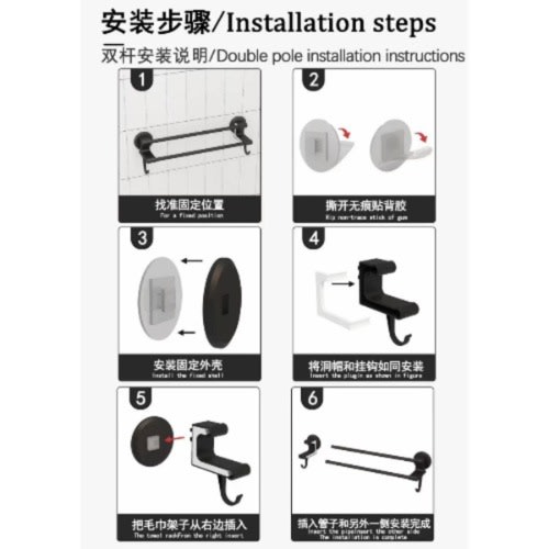 Buy Double Pole Towel Rack With Hooks - Black in Nigeria