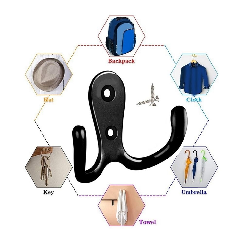 Detailed Information About The Product:These heavy-duty dual prong hooks are made of good quality zinc die-cast material, the screws are made of iron, sturdy and durable, and not easy to produce scratches, long service life.