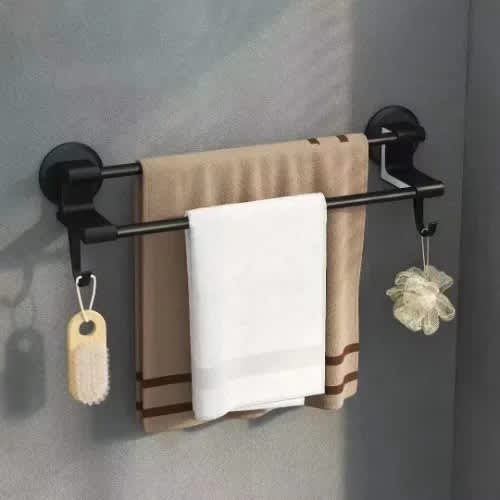 Buy Double Rail Stainless Steel Towel Hanger with Sponge hook - Black in Nigeria