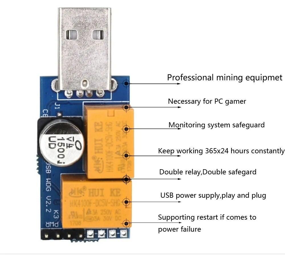 Buy Double Relay USB Watchdog Card Unattended Automatic Restart Blue Screen Crash Timer Reboot For 24H PC Gaming Server Mining Miner in Nigeria