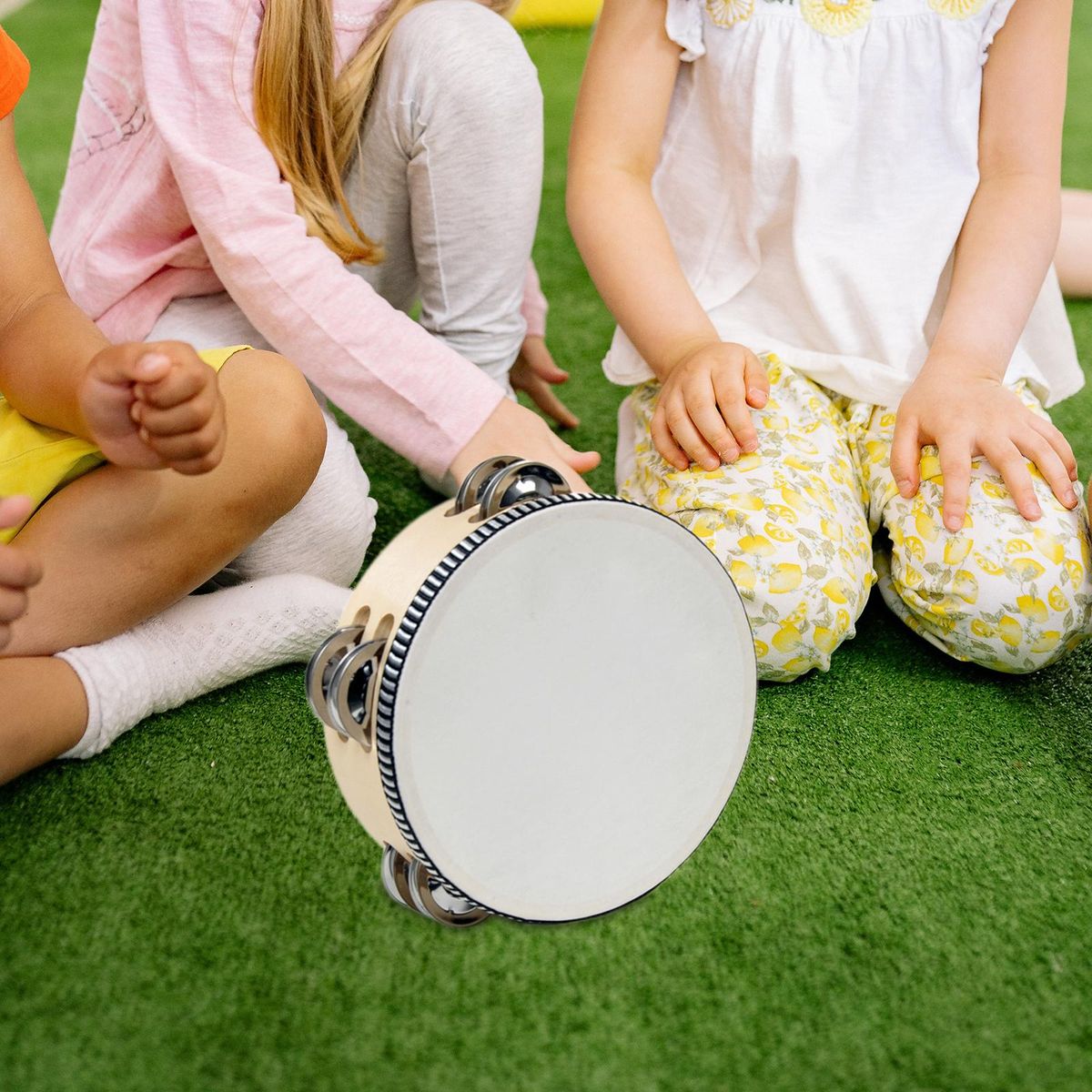 【Durable Material】 Handheld drum metal consisted of solid wood frame with good sound metal bells and headed with polyester leather, highly durable and easily portable. Produces a great sound when shaken or thumped.