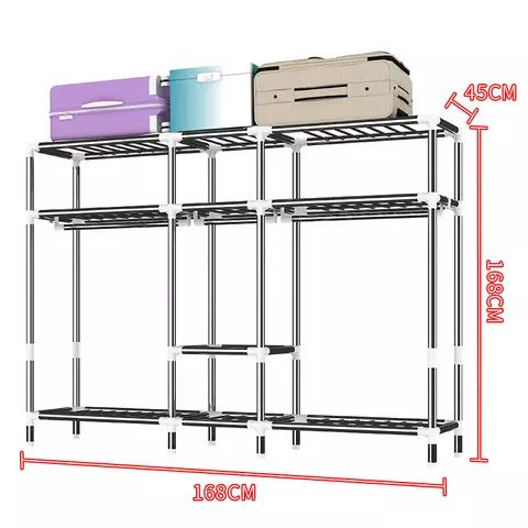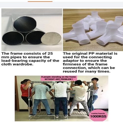 Material Description25MM Plating steel tube.Steel pipe diameter as thick as a dollar coin.White rice reinforcement sleeveThickened Oxford clothCurtain and door curtain designTassel design. * Perfect for storing clothes, books, toys, shoes, absolutely anything. * Dust-proof, Waterproof, Mildew Proofing, Antibacterial * Free Combination, Easy To Assemble And Detach *Good size for different storage needs,with super bearing capacity. * Portable and movable.