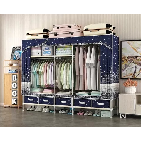 Galvanized Steel Pipe Wardrobe Bedroom Storage Furniture Folding Fabric Wardrobe Fabric Folding Width Home Furniture Modern S686