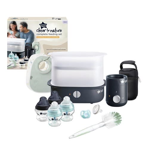 The Tommee Tippee Closer to Nature complete feeding kit includes all you need when bottle feeding your baby. In a sleek, space saving design, you can sterilise bottles in just five minutes. Contents stay sterile for up to 24 hours if unopened