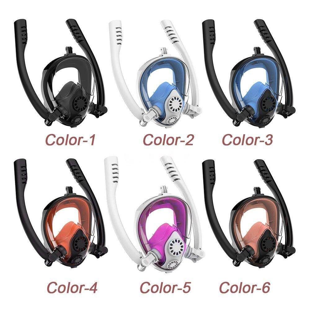 4、ANTI-FOGGING DESIGN,Features an advanced air circulation concept that prevents the formation of fog.Double rotatable and length-adjustable snorkels.
