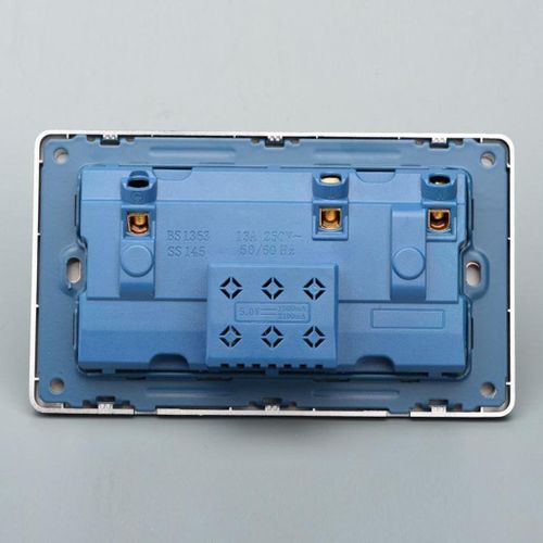 Double Wall UK Plug Socket 2 Gang 13A with 2 USB Charger Port Outlet Plate