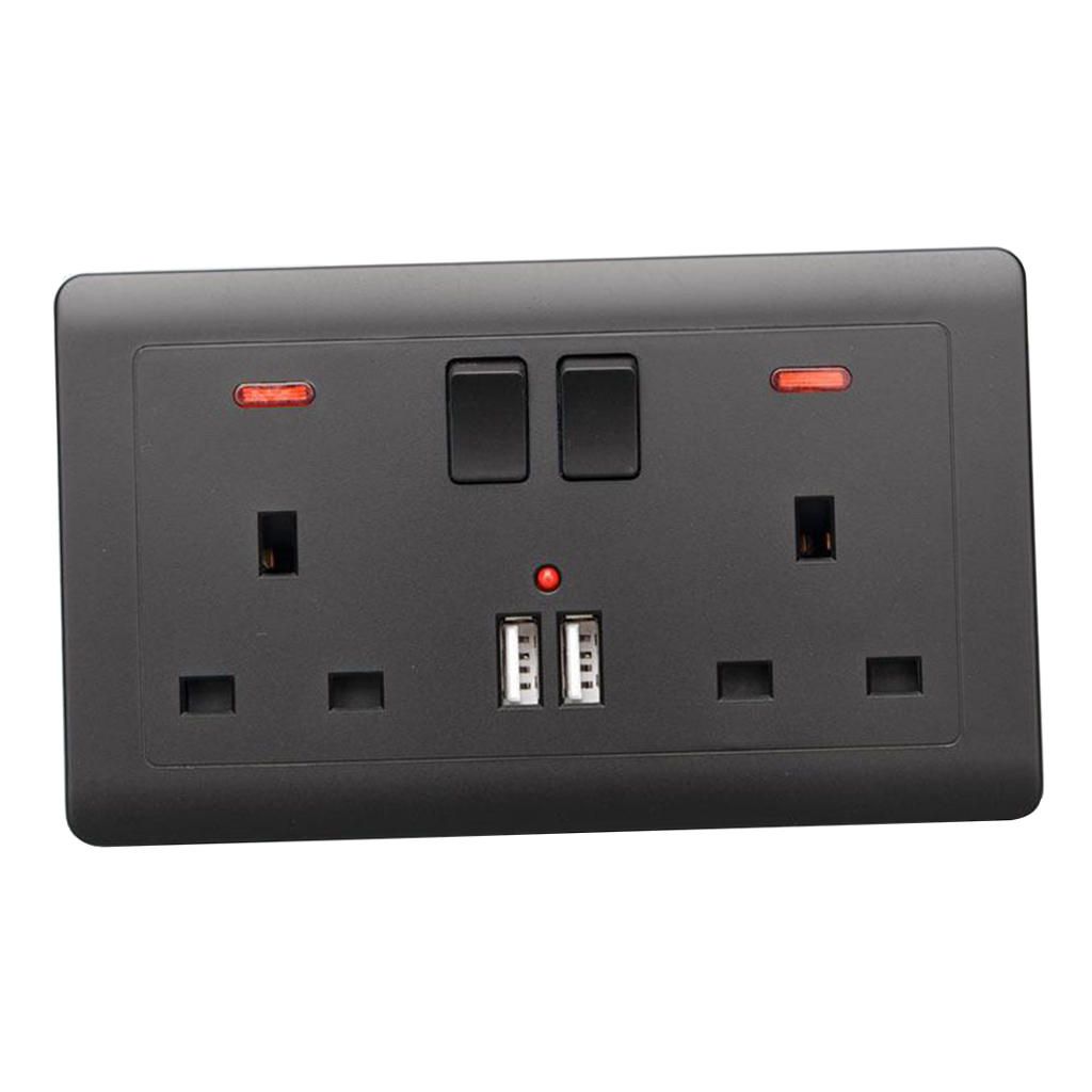 Double Wall UK Plug Socket 2 Gang 13A with 2 USB Charger Port Outlet Made by fireproof PC material, high temperature resistant, to use.This USB Wall provides two standard AC plug wall electrical outlet and 2 USB outlets for charging Cell Phones, , and USB devices, etc.Easy to install, convenient to use, power saving.AC plug design, effectively avoid danger of electric shock.