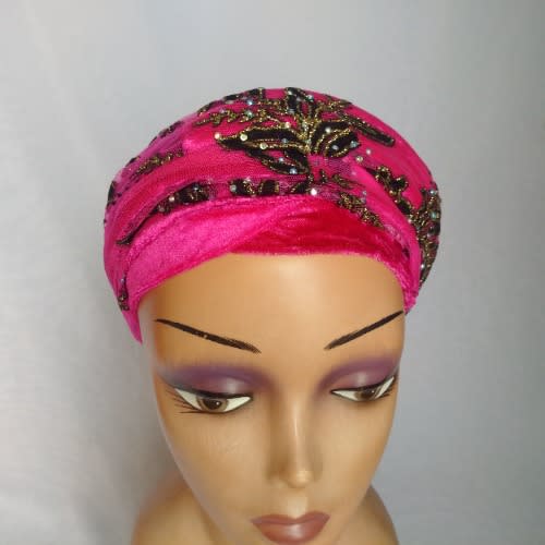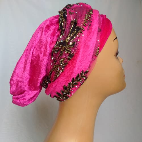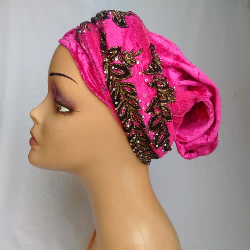 Buy Double Wrap Laced Turban Head Wrap - Fuchsia Pink in Nigeria