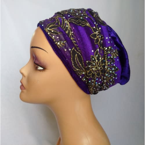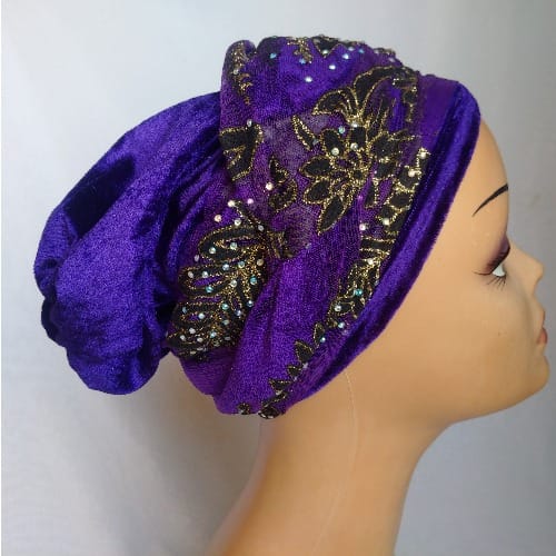 Buy Double Wrap Laced Turban Head Wrap - Purple in Nigeria
