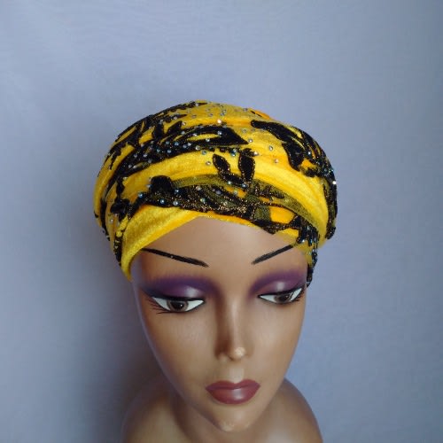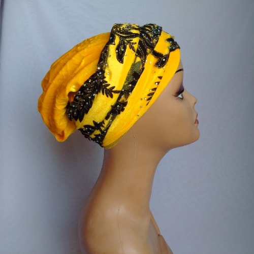 Buy Double Wrap Laced Turban Head Wrap - Yellow in Nigeria