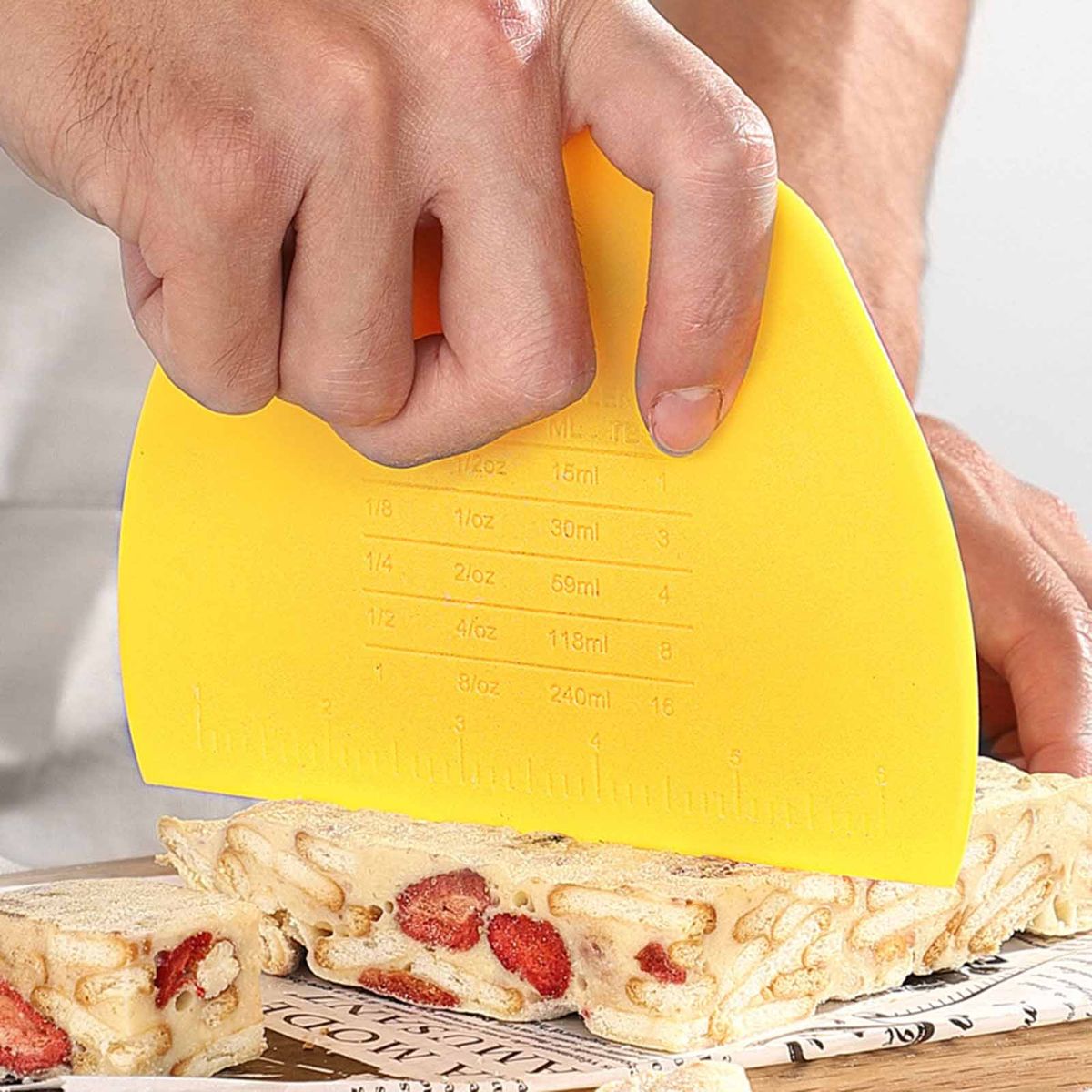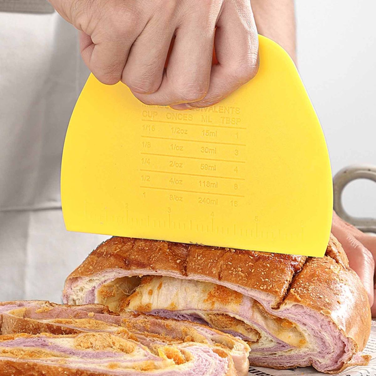 Perfect for daily life, the multi-functional baking spatula help you bake food conveniently, thanks to its arc shape and double-scale.