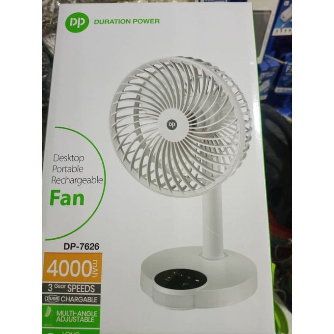Model No: DP-7626Battery Voltage: 3.7VInput: 5V----1ABattery Capacity: 4000mahPower and using time: Weak wind - 4Hours. Middidle wind - 2.5Hours. Strong wind -1.5Hours.Working Mode - USB or built-in Battery.Lighting source Power - 0.6W. Effective Wind speed - 4.5m/s.LED Light Soft comfort coolDouble mode power supply. Model No: DP-7626Battery Voltage: 3.7VInput: 5V----1ABattery Capacity: 4000mahPower and using time: Weak wind - 4Hours. Middidle wind - 2.5Hours. Strong wind -1.5Hours.Working Mode - USB or built-in Battery.Lighting source Power - 0.6W. Effective Wind speed - 4.5m/s.LED Light Soft comfort coolDouble mode power supply. Model No: DP-7626Battery Voltage: 3.7VInput: 5V----1ABattery Capacity: 4000mahPower and using time: Weak wind - 4Hours. Middidle wind - 2.5Hours. Strong wind -1.5Hours.Working Mode - USB or built-in Battery.Lighting source Power - 0.6W. Effective Wind speed - 4.5m/s.LED Light Soft comfort coolDouble mode power supply.