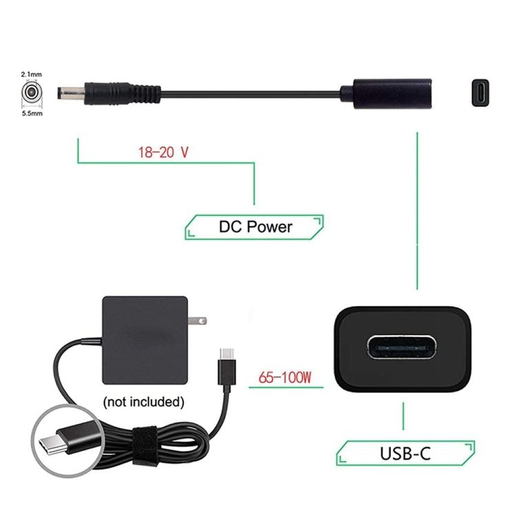 DP USB-C / Type-C to 5.5 x 2.1mm Power Adapter Charger Cable