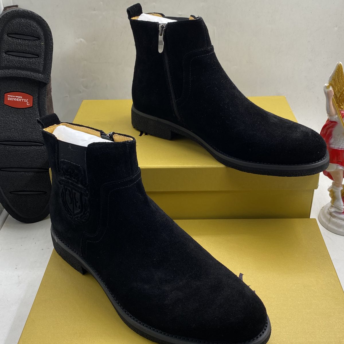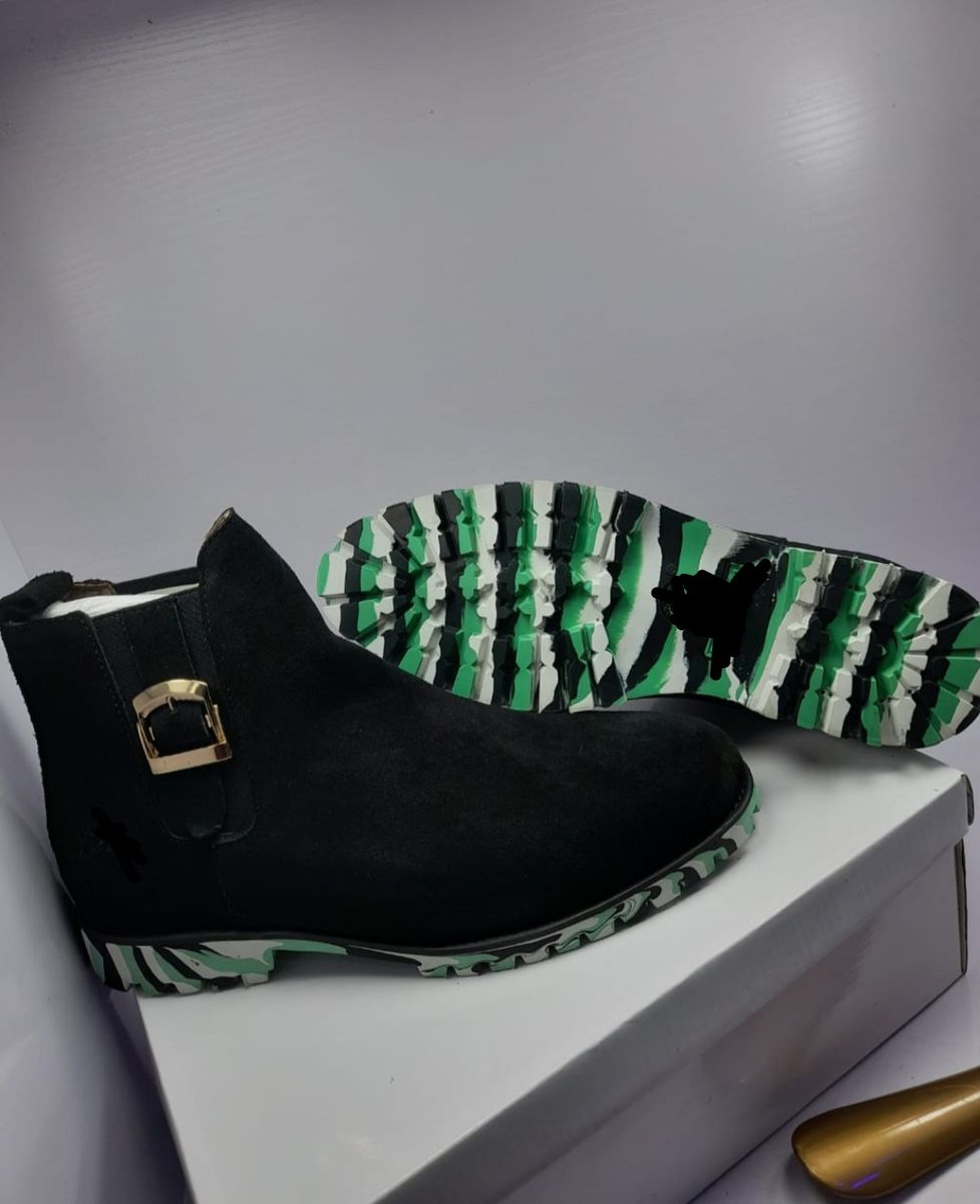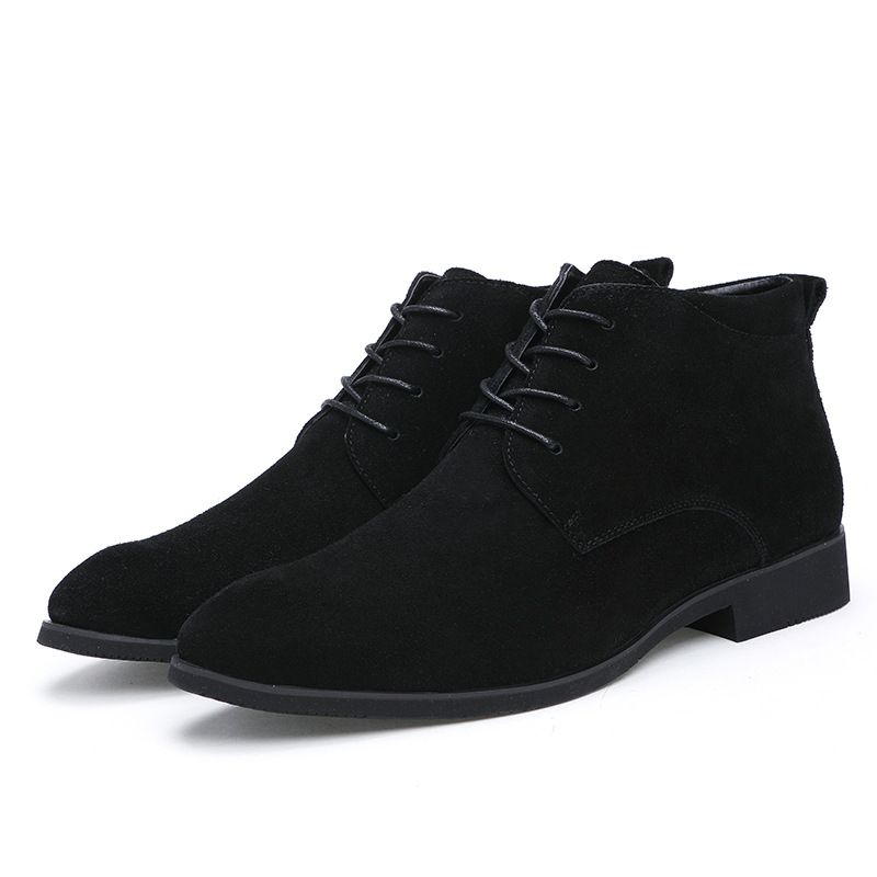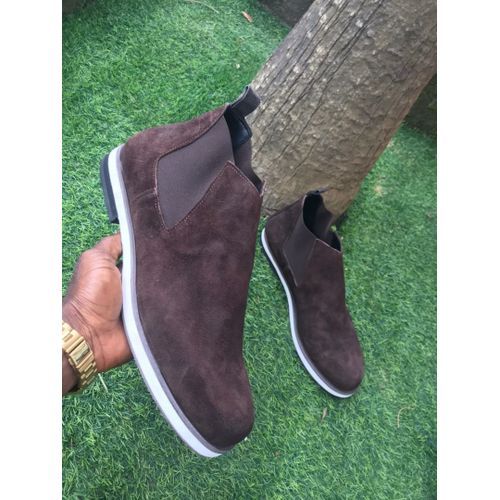 Shaft measures approximately ankle-high from arch, heel measures approximately 1"Superior material, handmade, sophisticated technique and 100% satisfaction customer serviceSoft TPR outsole making the dress boots sufficiently stable and durableAnkle-high cut with twin elastic side panels and pull up tab for easy on and offClassic Chelsea style is extremely versatile and can be worn with both formal and casual outfitsWell-made leather lining keeps your feet warm and dry throughout the dayPremium Suede Leather