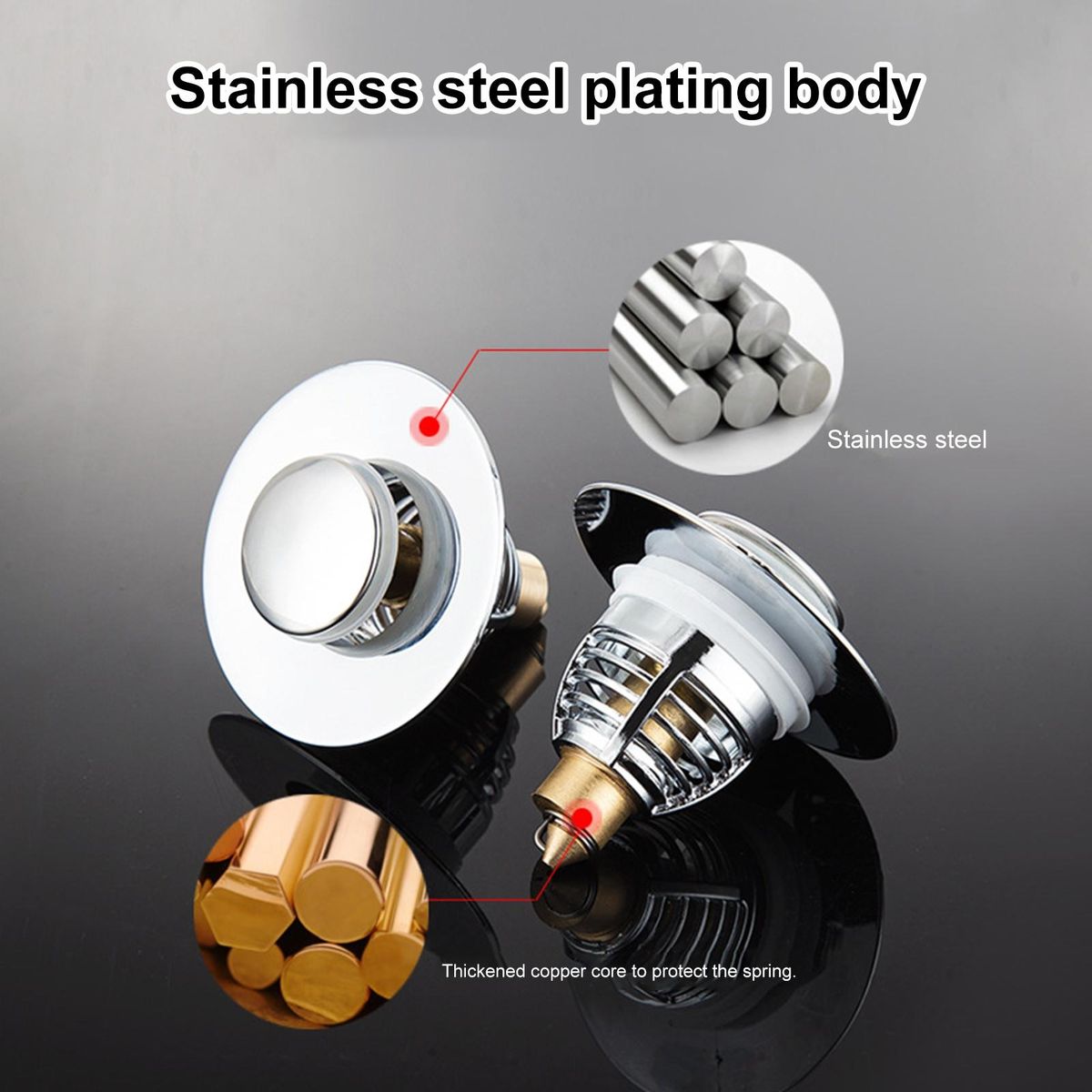 Our latest bathroom sink plug, crafted with utmost precision using high-quality solid brass and stainless-steel materials. this ensures exceptional rust prevention and durability, guaranteeing a long-lasting product that will withstand the test of time.