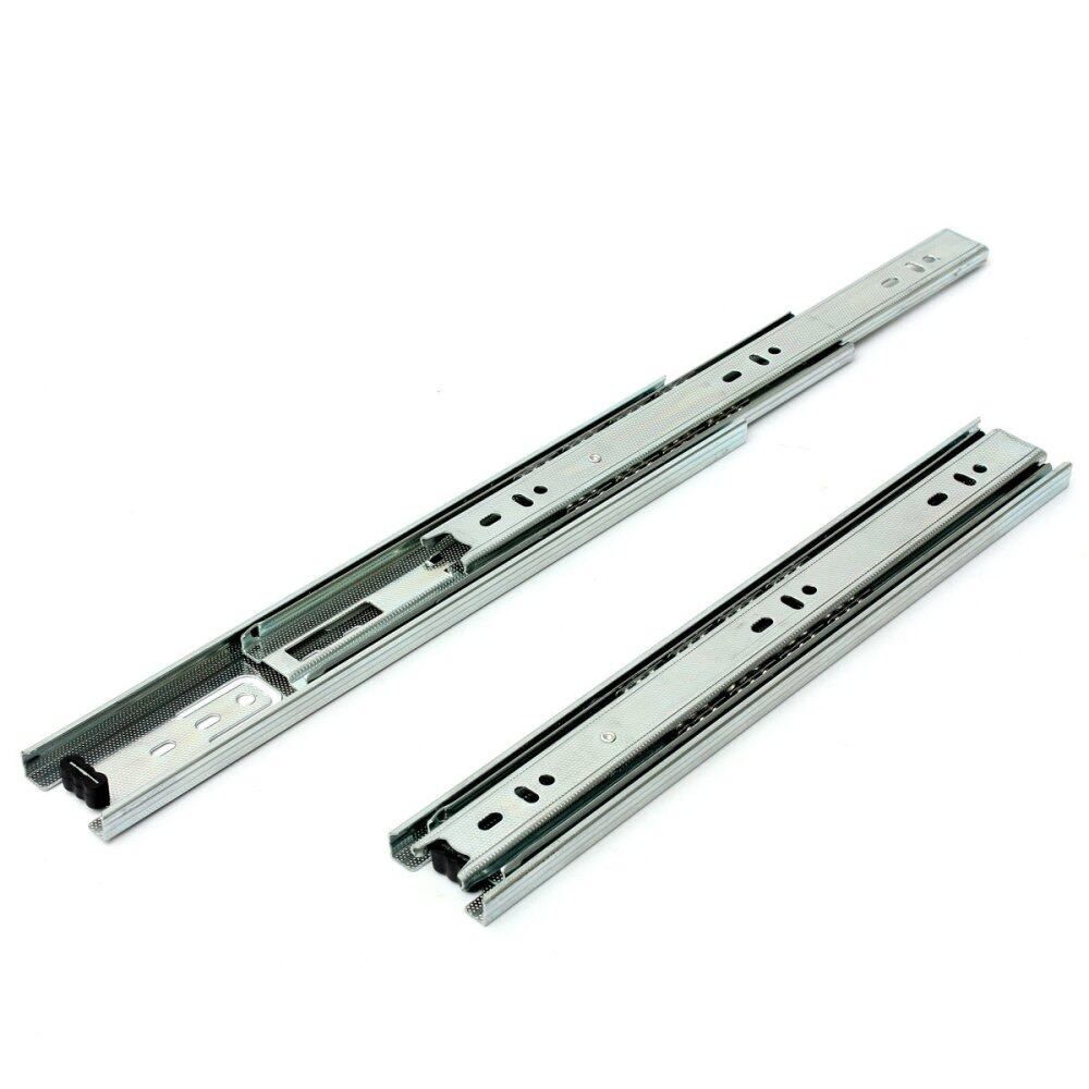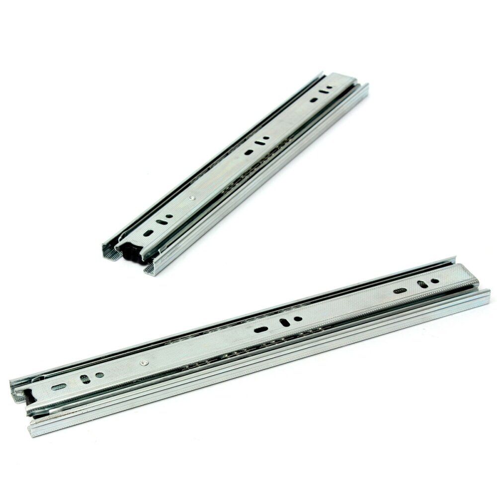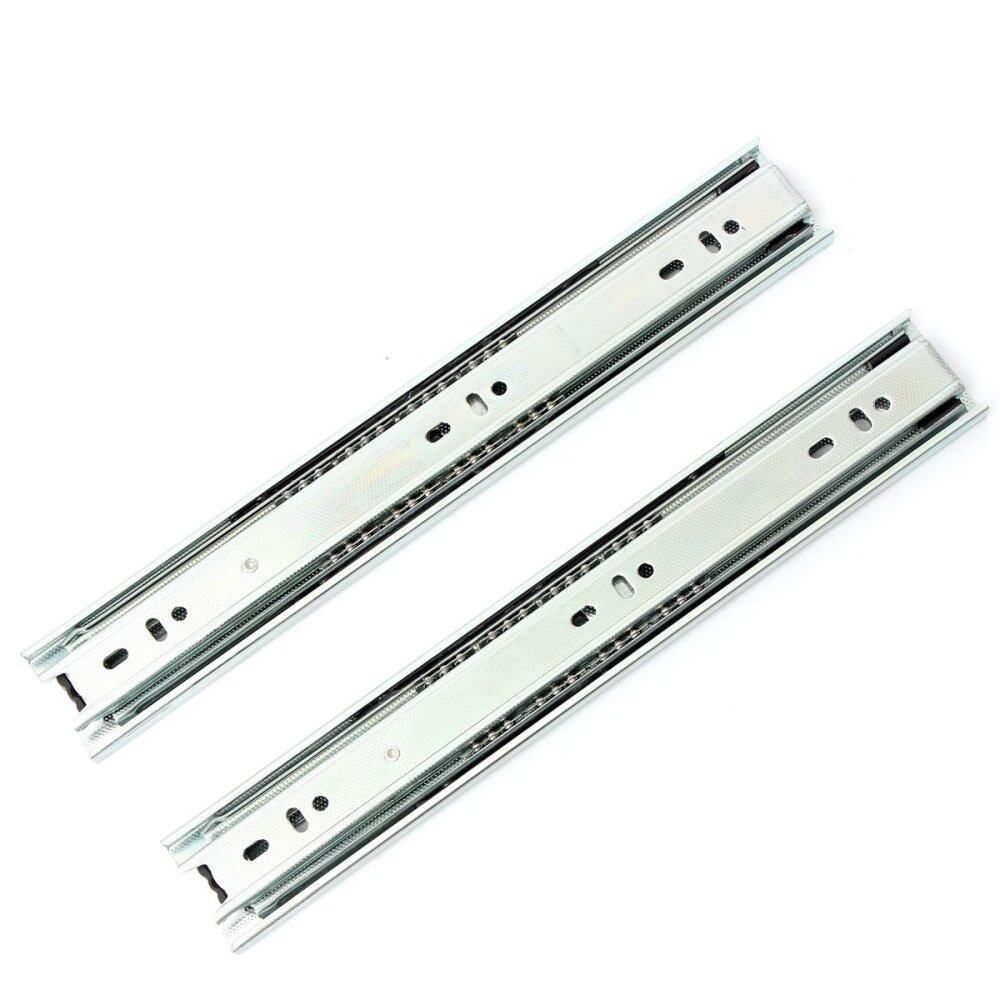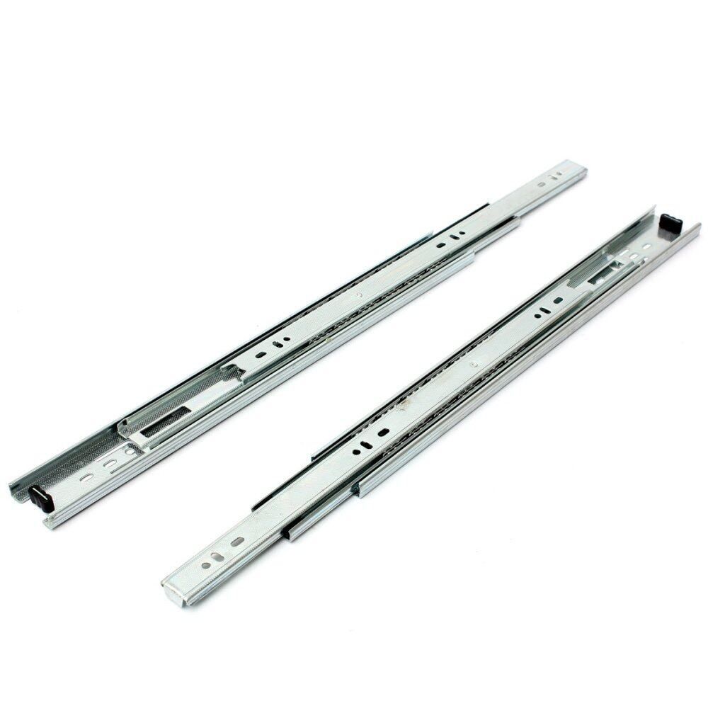 This full extension telescopic drawer slides equipped with high quality ball bearing with excellent workmanship enable quiet and ultra smooth sliding.Industrial standard 45mm Width (around 1.7") guarantees real 100 LB rated capacity.Side mounting and 45mm groove mounting can be selected with length ranging from 10" to 20" ideal for filing cabinets, desk pedestals and general storage drawers usage.