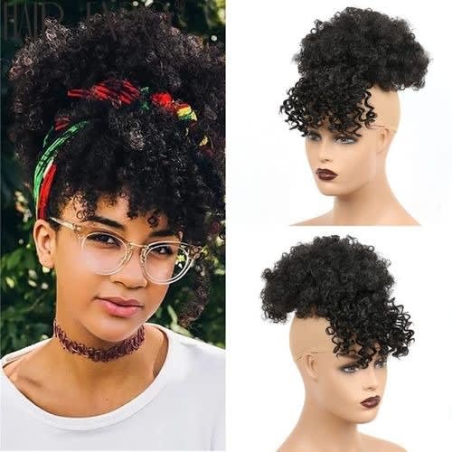 Buy Drawstring Afro Curly Bun Ponytail With Fringe - Black in Nigeria