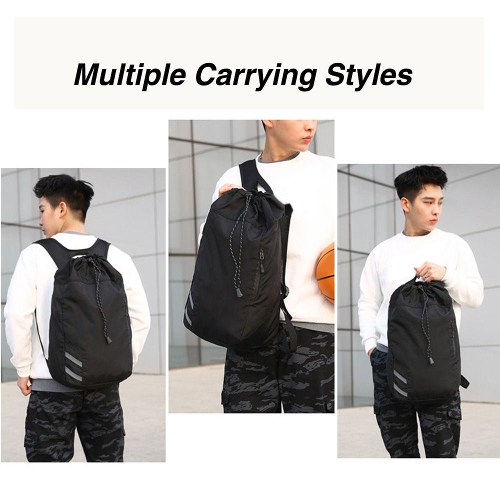 Large-capacity main compartment with drawstring closure for quick ball storage.