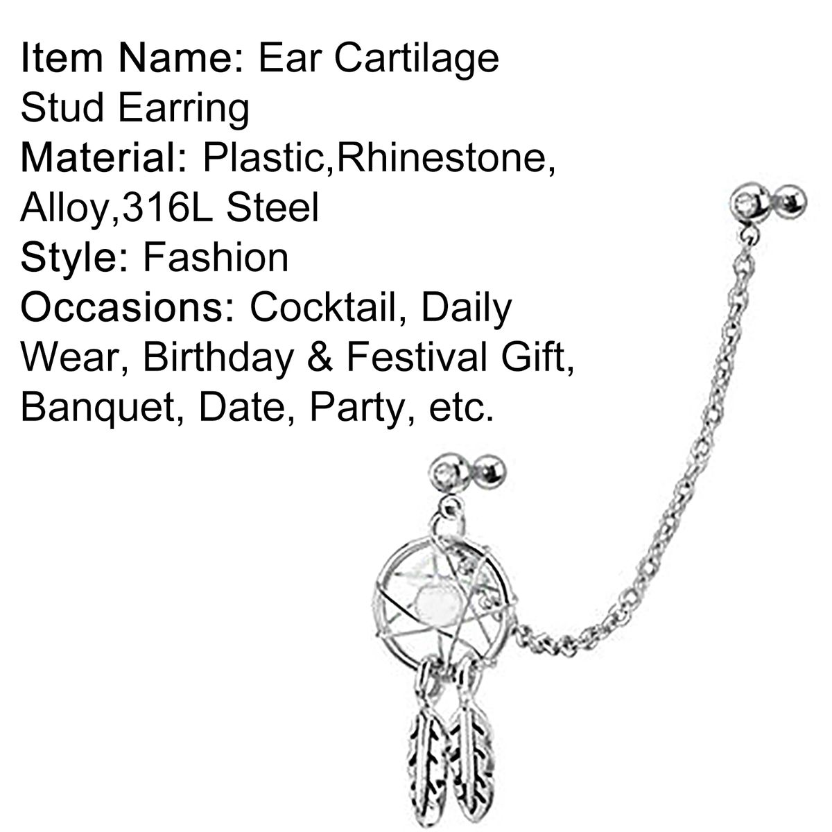 Package Includes:1 X Ear Cartilage Stud Earring (Not One Pair)
