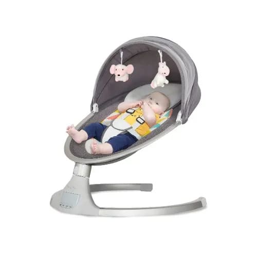 Features & detailsThe Ingenuity Swing 'n Go, Portable Swing, is a unisex foldable mini swing designed for easy transport; Boutique Collection features premium fabrics and soft, fleecy shoulder strap cushionsFeatures 5 swing speeds, 8 melodies and 3 nature sounds with extra quiet motor; parents can select the desired timer setting of 30, 45 or 60 minutes; auto-shutoff after 90 minutesPowered by 4 D batteries (not included); Hybridrive technology helps extend the life of your batteries to save money and convenience