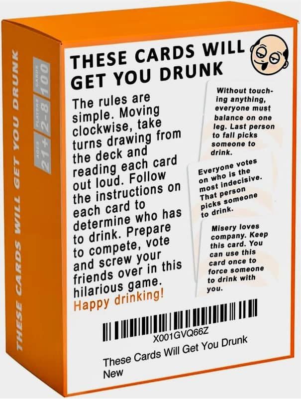 These cards will get you drunk! The rules are simple. Moving clockwise, take turns drawing from the desk and reading each card out loud. Everyone has a good reason to drink in this hilarious game! Best card game at your friends gathering party. Take it home and enjoy your happy drinking!