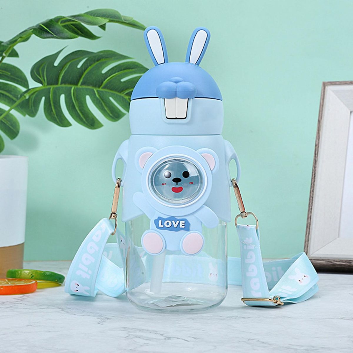 The straw cup adopts a cartoon shape, which can adjust the strap, suitable for schools.