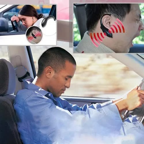 It is worn over the ear and has an electronic position sensor. When your head nods forward, it sounds a loud alarm to instantly wake you and alert your passengers.