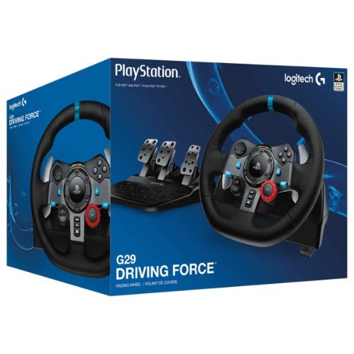 Get an immersive racing experience with the Logitech G29 Driving Force Racing Wheel. The G29 features a 10.24" racing wheel covered with hand-stitched leather. The wheel rotates up to 900 & deg; and features dual-motor force feedback for a realistic driving experience. In addition to the wheel, the G29 also comes with a 3-pedal set. The throttle, brake, and clutch pedals allows you to accelerate, brake, and change gears with the feel of an actual car. The nonlinear brake pedal mimics a pressure-sensitive brake system for a more responsive, accurate braking feel. There are also rubber feet for hard surfaces and a patented retractable grip system for carpets.