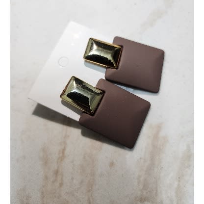 Buy Drop Square Ear Rings- Brown in Nigeria
