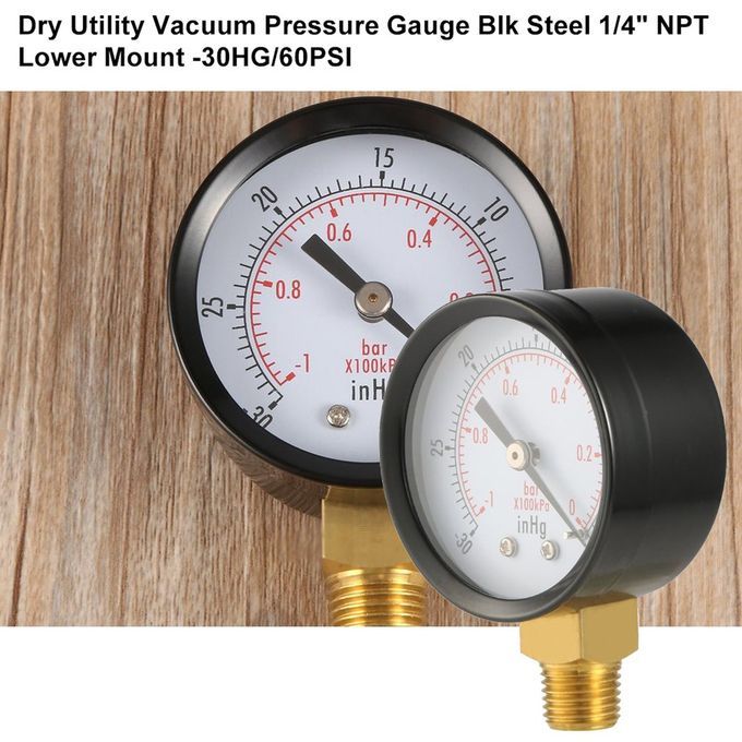 Dry Utility Vacuum Pressure Gauge Blk Steel 1/4 NPT Lower Mount -30HG/60PSI" Black
