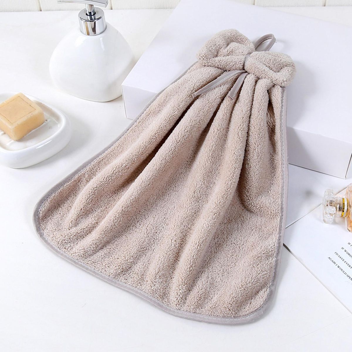 You can hang this hand towel on a storage hook or shelf without taking up space and easy to drain as it features a lanyard design.
