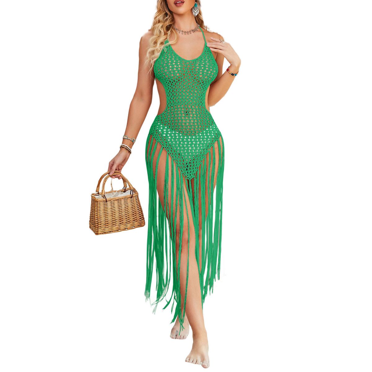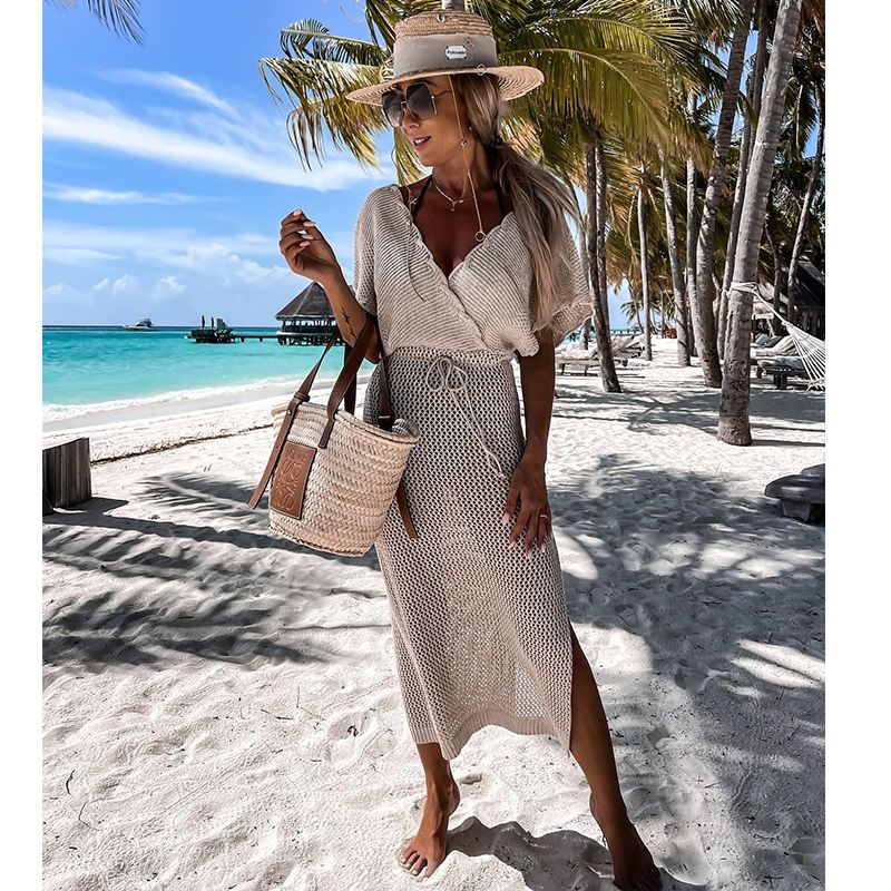 Beach Wear Cover Ups Shoulder Rainbow Hollow Out Mesh Crochet Dress WomanSwimsuit Cover Up Maillot De Bain Robe Ete Femme Qq653