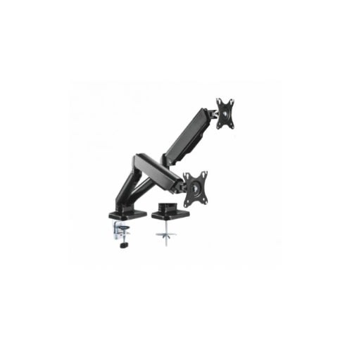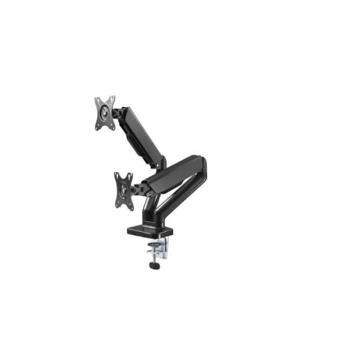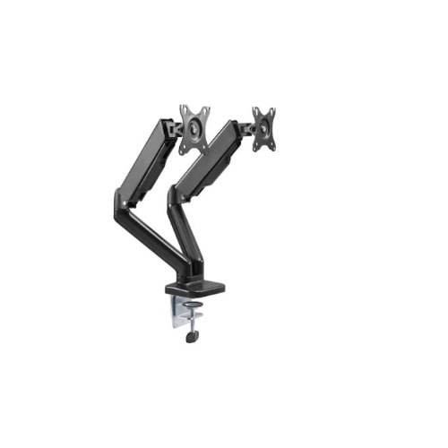 The dual arm monitor is stout in appearance and robust in performance. At the touch of a finger, the high quality gas spring mechanism provides easy monitor arm movements including up, down, extending and retracting to achieve the best ergonomic position.
