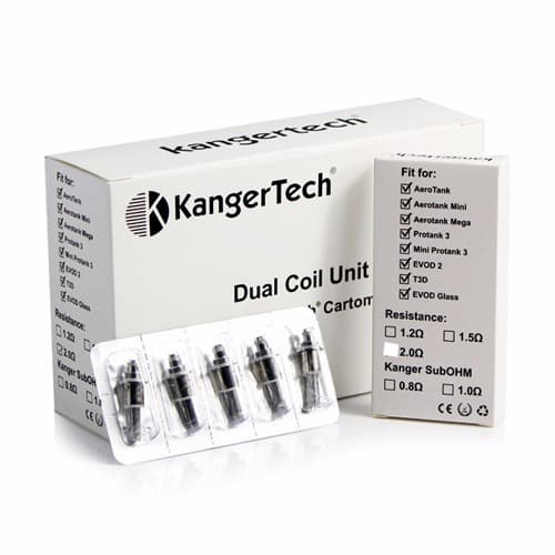 Kanger produces some of the most popular electronic cigarette devices on the market today. Their replacement coils are no different. These Kanger replacement atomizer coils feature Kanger's new Bottom Dual-Coil (BDC) design, resulting in an incredible vaping experience. The Kanger Dual Coil heads not only offer the benefits of a bottom-coil system, but also provide double vapor production due to the dual coils. It can be use For Subtank, EVOD Mega, Aerotank, Aerotank Mini, Aerotank Mega, Aerotank V2, Aerotank Giant, Aerotank Turbo, Aerotank Mow 1.8ml, Aerotank Mow Mega 2.8ml, Genitank (V2), Genitank Mini, Genitank Mega, Genitank Giant, Protank 3, Mini Protank 3, EVOD Glass, EVOD 2, T3D and evod twist m16.