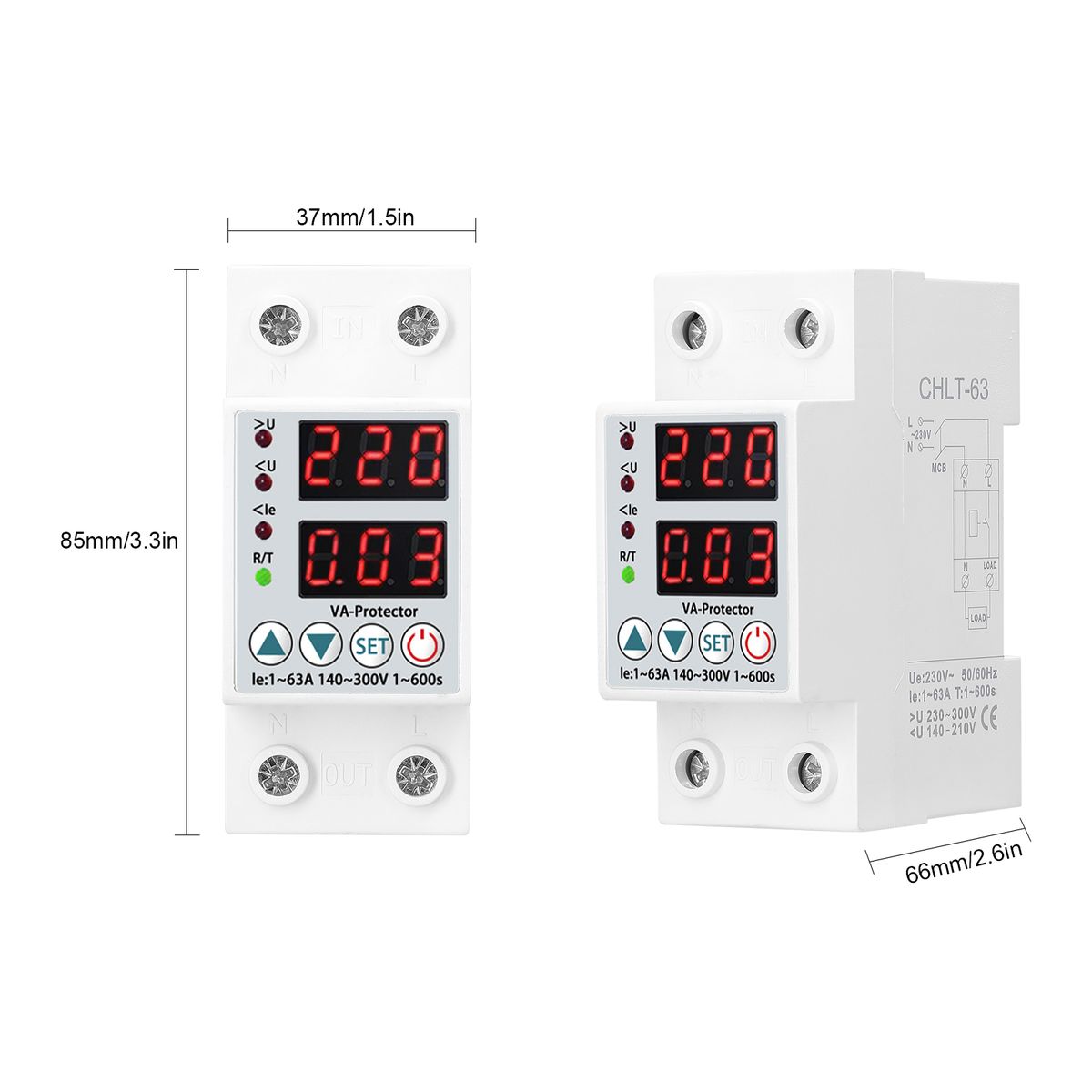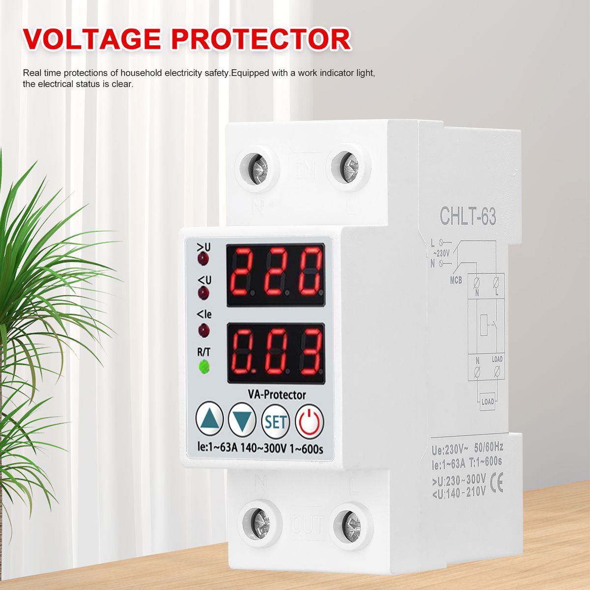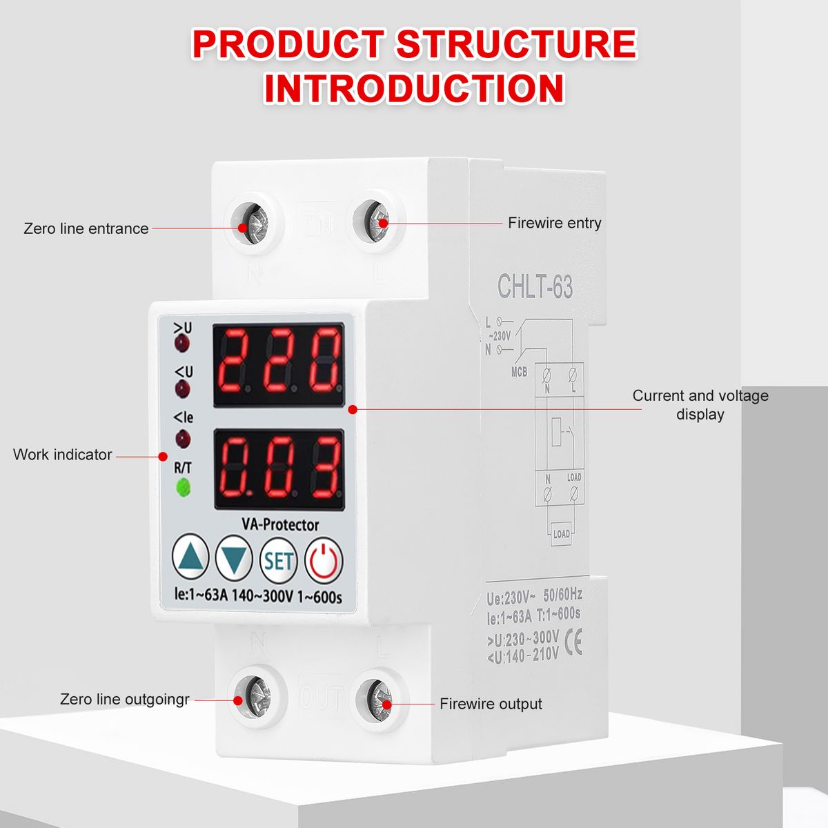 Electric current(>A)setting range: 1-63A
