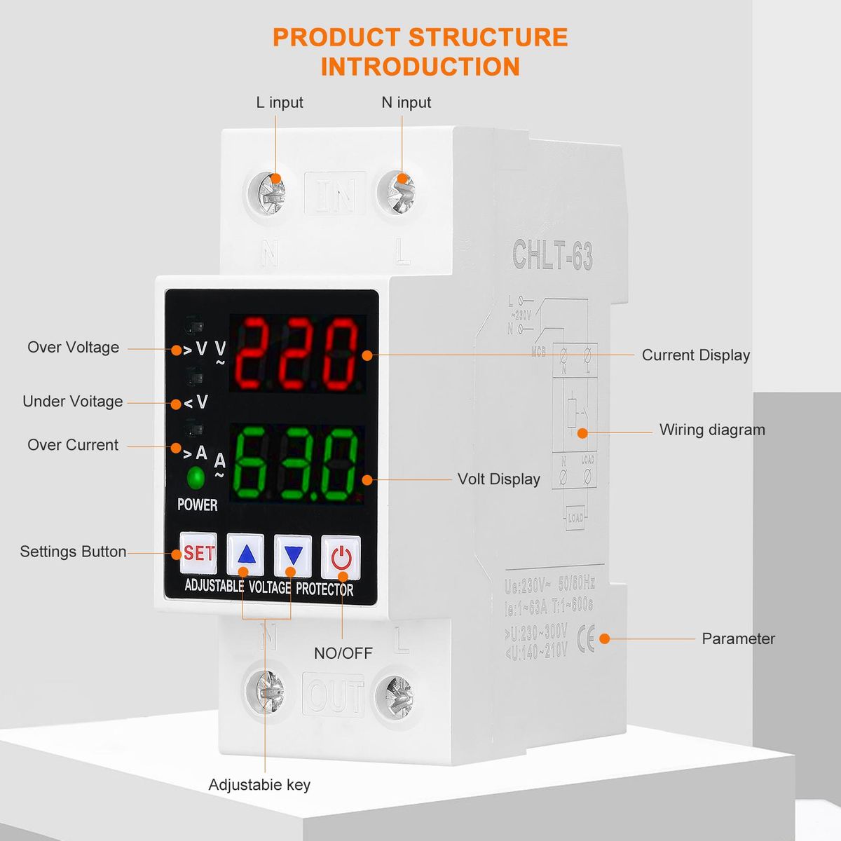 Buy Dual Display Adjustable Voltage Protector Intelligent Over-voltage Under-voltage Over-current Protect Device Home Relay Self-resetting Voltage Protector in Nigeria