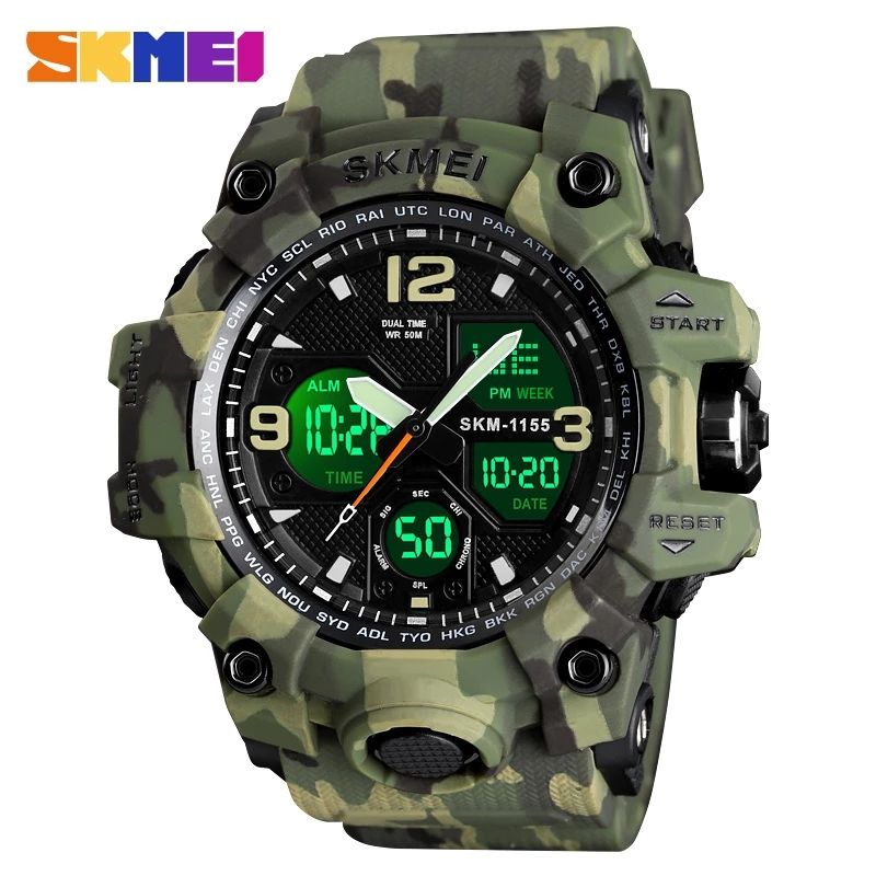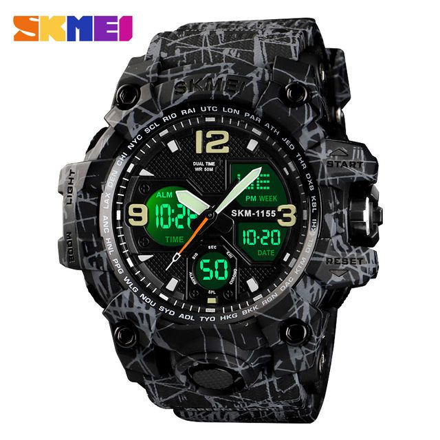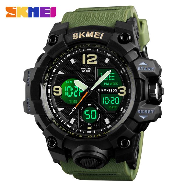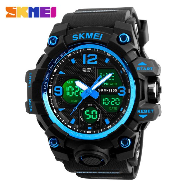 Brand: SKMEIModel: 1155BStyle: sports, military, fashion, leisure, business, diving.Display: quartz + digital meterFunction: 2 hours, alarm clock, day of the week, waterproofSports: Original Japanese Digital Sports
