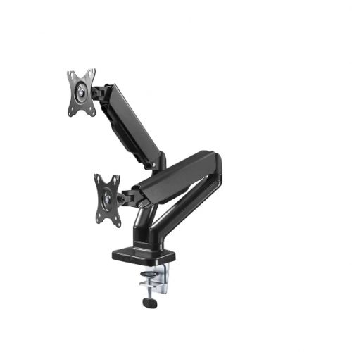 The Smaat SDA202BK Elemental Gas Spring Monitor Arm is stout in appearance and robust in performance. At the touch of a finger, the high-quality gas spring mechanism provides easy monitor arm movements, including up, down, extending and retracting to achieve the best ergonomic position. The convenient VESA plate with keyhole slots provides quick display mounting or removal. Desk clamp and through-hole grommet mounts are included. Cable management along the arm maintains a clean work area and wires organized.